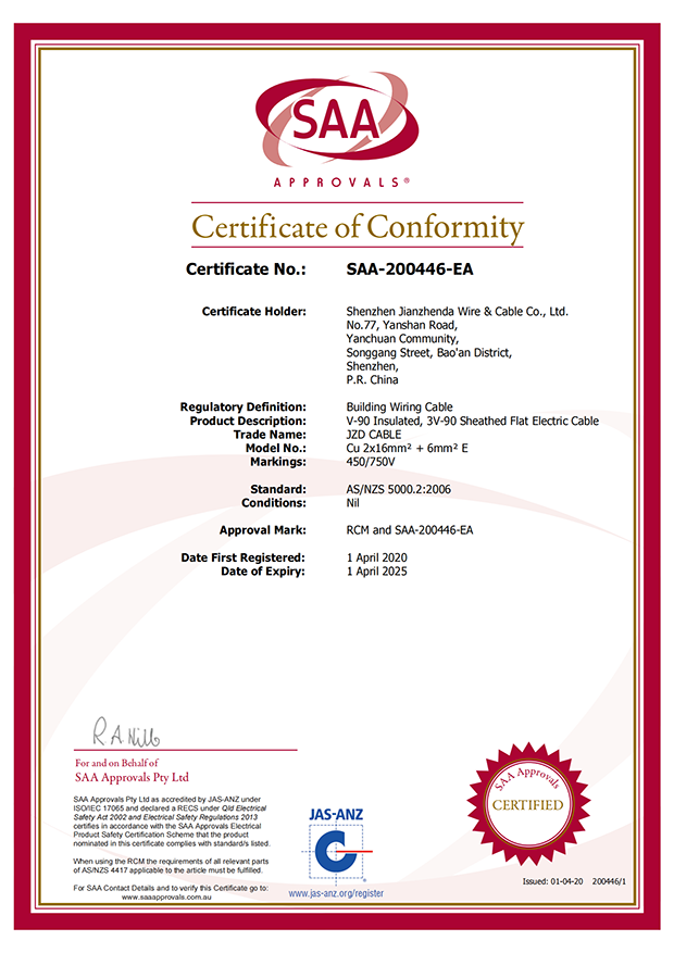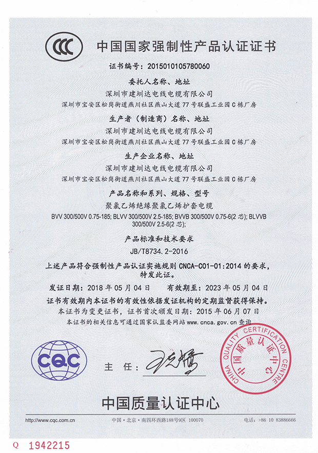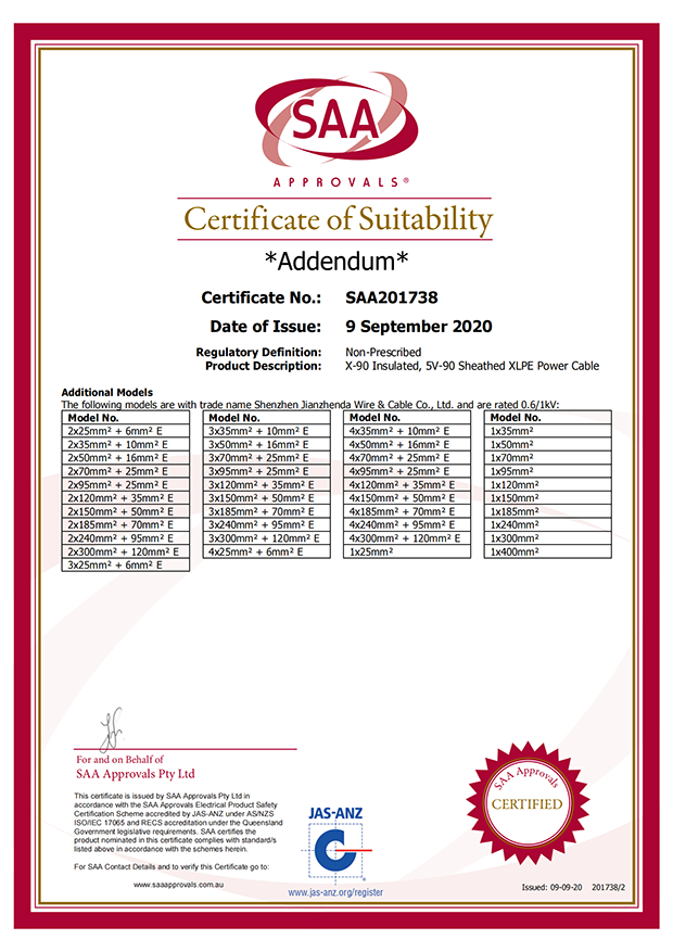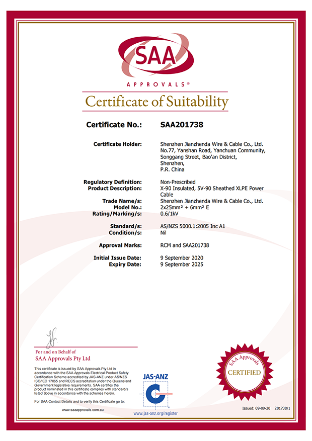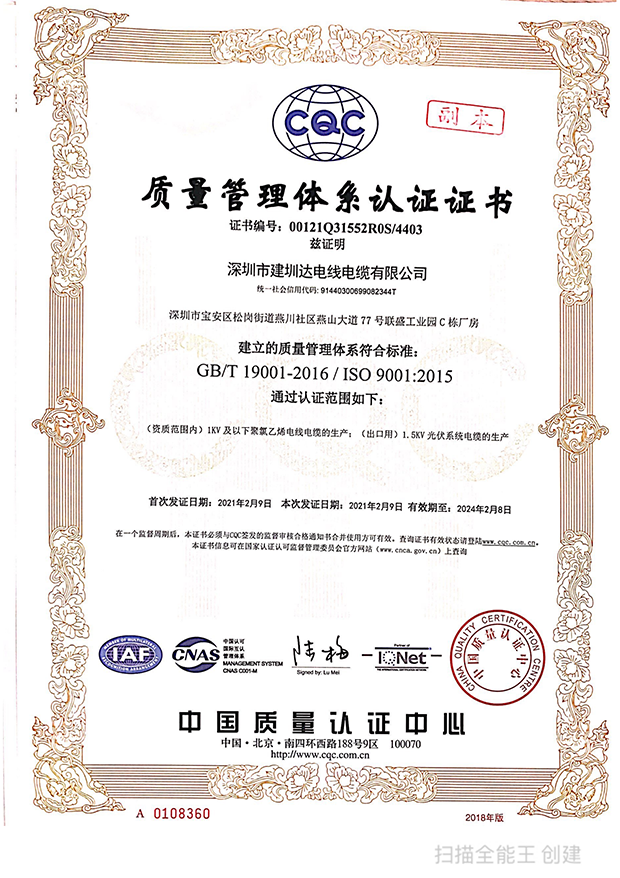 深圳建圳達電線電纜有限公司,成立于2000年,是一家電線電纜制造商,我們通過了世界各地不同市場的多數(shù)認證,如:CCC、RoHS、CB、SAA、TUV、VDE、PSE、BPS、UL、CSA。我們根據(jù)定制產品不斷更新新的認證。經過數(shù)十年的發(fā)展,我們與來自世界各地的客戶建立了長期的合作關系。我們曾經是菲律賓機場,,柬埔寨的電力站,美國的醫(yī)院,工廠,埃塞俄比亞的水電站項目。我們是一家值得信賴的電線供應商。